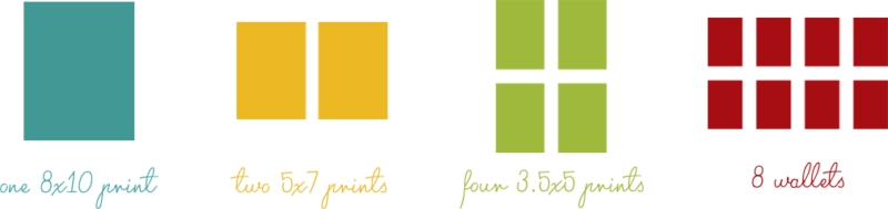 You get to choose what sizes your prints will be! Order what you need, without being stuck with a bunch of prints you’ll never use! If you need more, simply order extra print units!